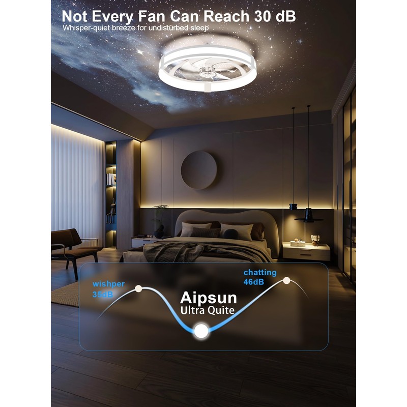 - 【Easy to Install】Aipsun Low Profile Ceiling Fan with Light is designed with modular components. Mount this low profile ceiling fan with light on ceilings in just minutes using our step-by-step video guide and printed manual.