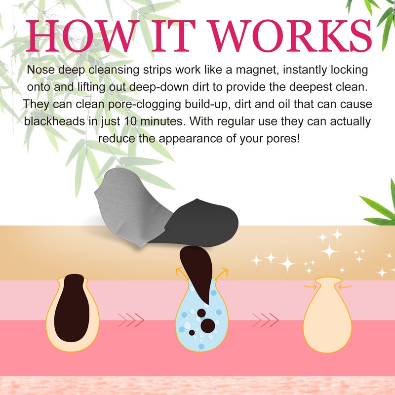 - 🍀Like A Blackhead Magnet: Our blackhead nose strip uses charcoal to act as a magnet that lifts stubborn buildup from the skin.Our uniquely developed pore strips act like a magnet to safely and effectively remove dirt, reduce oily skin, and help eliminate blackheads.