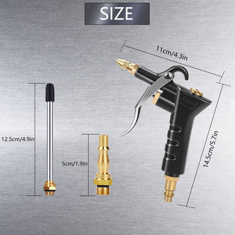 • ★ACCESSORIES - Air Blow Gun,Compressed Air Gun in addition to the gun body, our dust blowing gun also includes a long nozzle, a German pneumatic adapter and a British pneumatic adapter