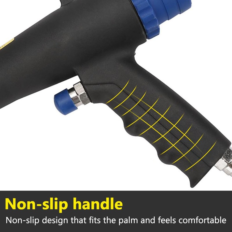 • Professional design: the outlet is very concentrated, strong and large. Small compressed air volume, low consumption, large flushing performance, energy saving. This air blow gun is designed for highly efficient blowing and is ideal for cleaning parts and surfaces.