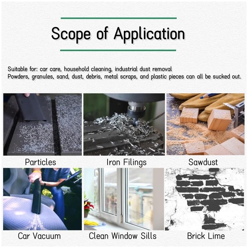 • Main use: the pneumatic blow/gun extraction is an environmentally friendly industrial waste cleaning product that can suction/blow various waste or dust quickly and effectively.