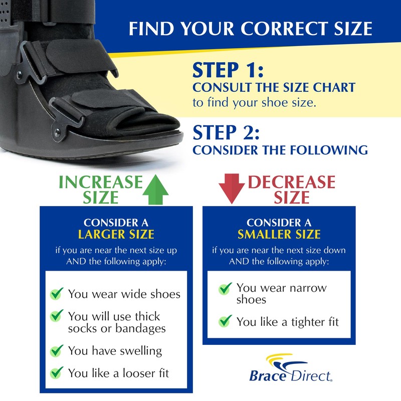 Brace Direct brings you the best in class air fracture orthopedic boot from Brace Align at direct pricing. While wearing the Cam Walker Fracture Medical Boot you will reduce pain, swelling and edema of the injured foot and speeding up the recovery process. The walking boot is made out of a polymer material making it extremely durable for long periods of wear with your comfort in mind. The medical grade velcro straps make it easy to put on and take off when bathing and sleeping and keeping you secure, stable and protected while adjusting for swelling or bandages. With the light weight, low-profile rocker design you will walk more naturally and continue with your regular day's activies without feeling encumbered by a heavy walking brace or cast. The interior ultra soft cushioned material is designed for breathability and keeps you feeling cool and dry. The open toe area allows maximum airflow while also ensuring a comfortable fit for adjusting and removing bandages or socks. Controlled ankle movement support during everyday wear. Our walker boot provides ankle support after acute ankle sprains or fractures