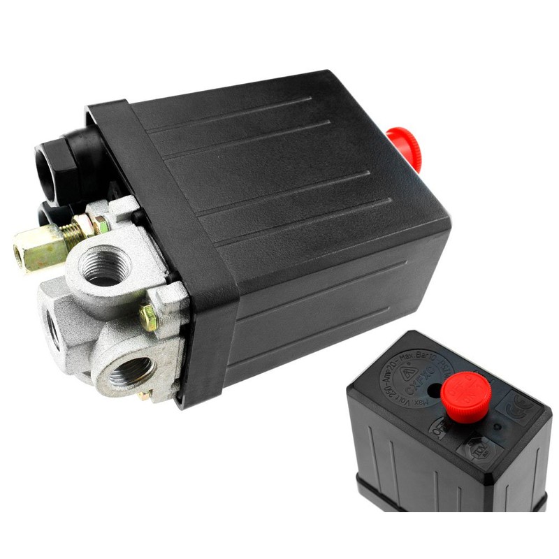 - Air pressure switch is used to regulate tank pressure between two pre-set values on Standard electric air compressors