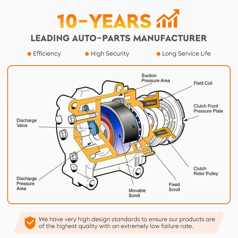 - 👍 Premium Quiet AC Compressor: This air conditioning compressor is meticulously crafted using high-quality materials and advanced technology,ensuring durability while significantly reducing noise levels.It provides a cooling effect that is consistent with that of original equipment parts.