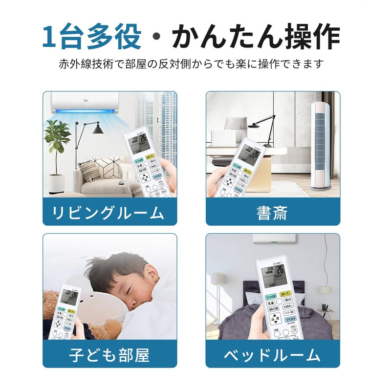 • (Long Range of Use) Equipped with powerful wide angle infrared rays, the operating distance is about 26.2 ft (8 m), and the left and right control angle is about 120 degrees. It is not limited to the distance or angle, and is easy to operate from every corner of the room