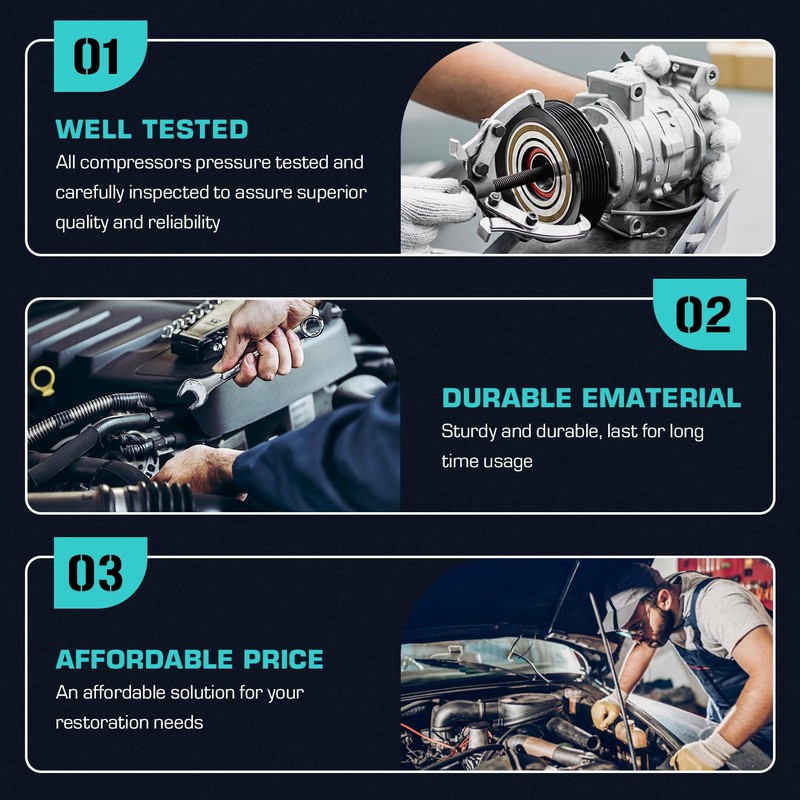 • 【Energy Saving & Low Noise】The AC compressor works steady and efficient under a low noise condition, provide you with a chill nice and cold ride. Under a lower load factor, low power will be input when driving at high speed, which increases fuel economy and makes operation smoothly.