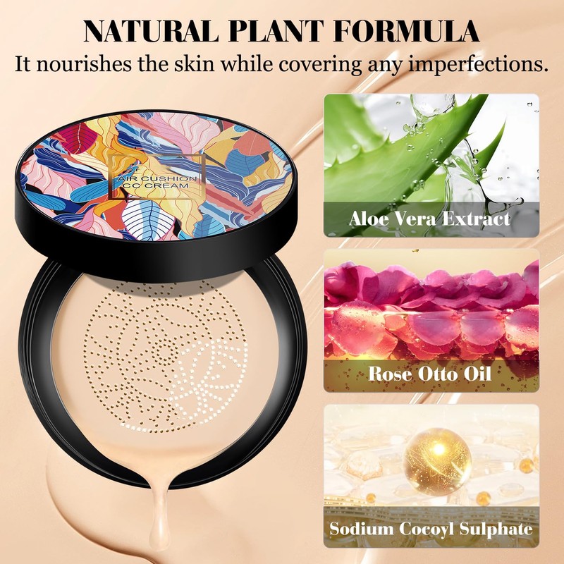 - The Mushroom Head Air Cushion CC Cream is infused with moisturizing ingredients