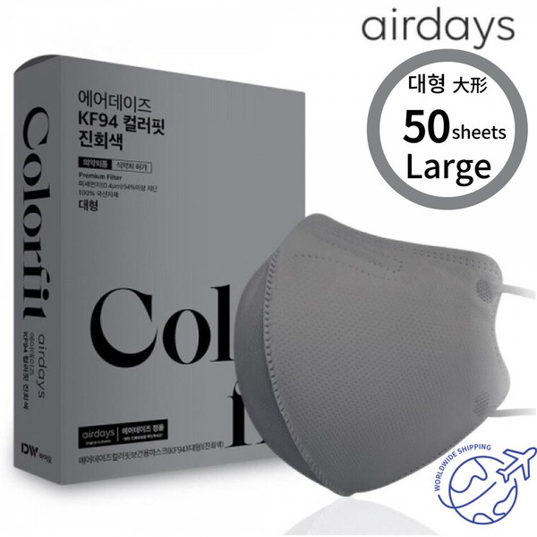 Air Days Color Fit Large Dark Gray (50 sheets) KF94 / 에어데이즈 컬러핏 대형 진회색 (50매) KF94