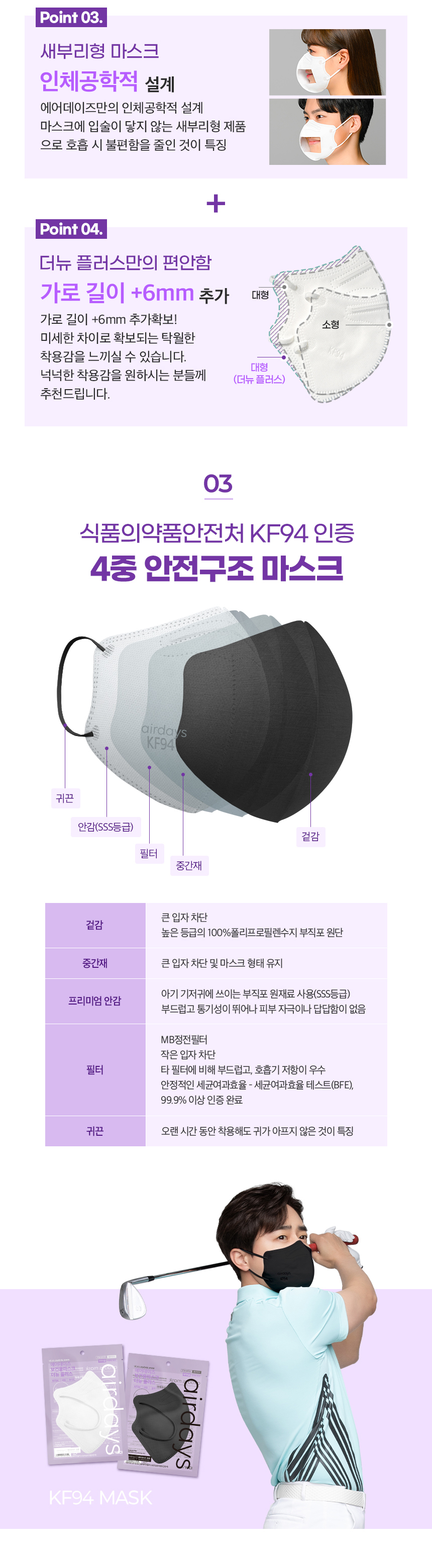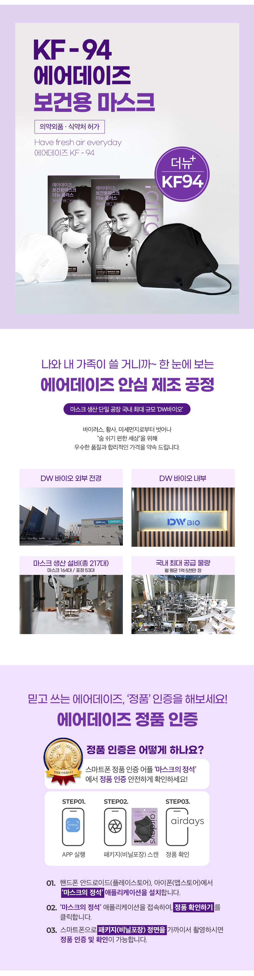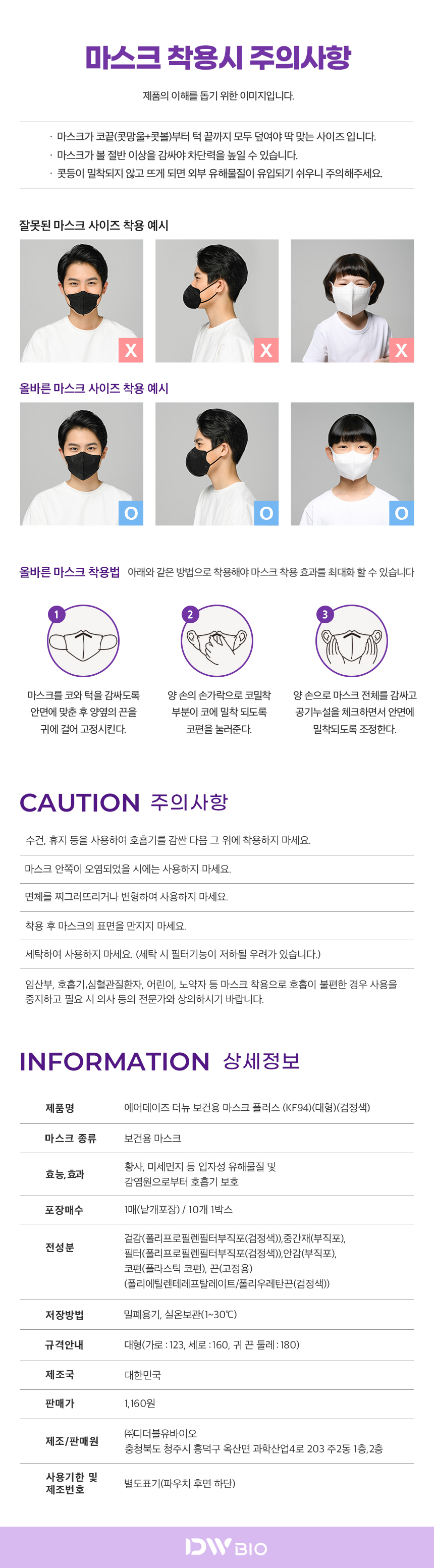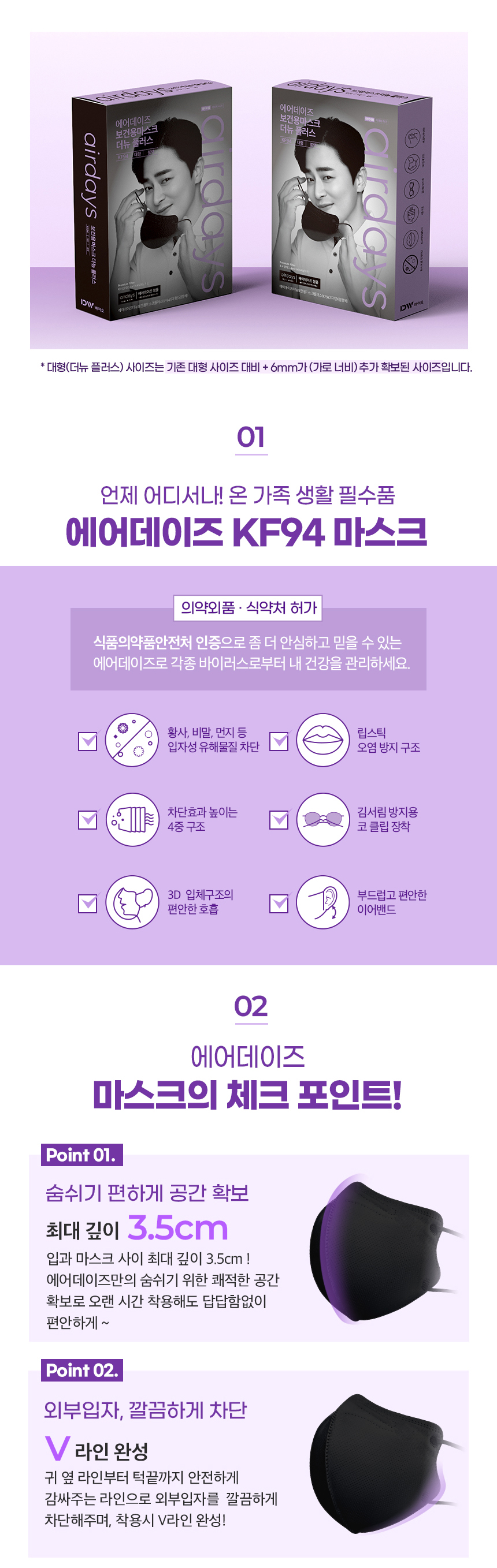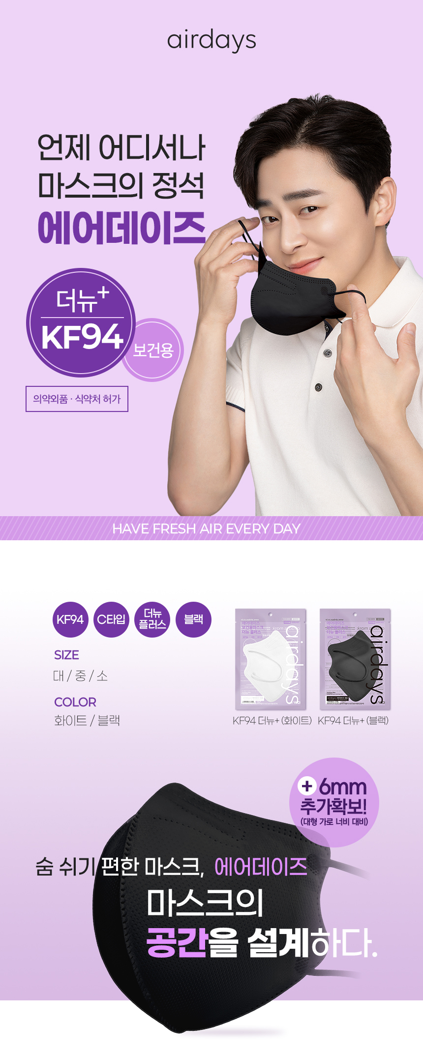 Air Days KF94 The New Plus Jo Jung-seok Black 50 sheets / 에어데이즈 KF94 더뉴플러스 조정석 블랙 50매