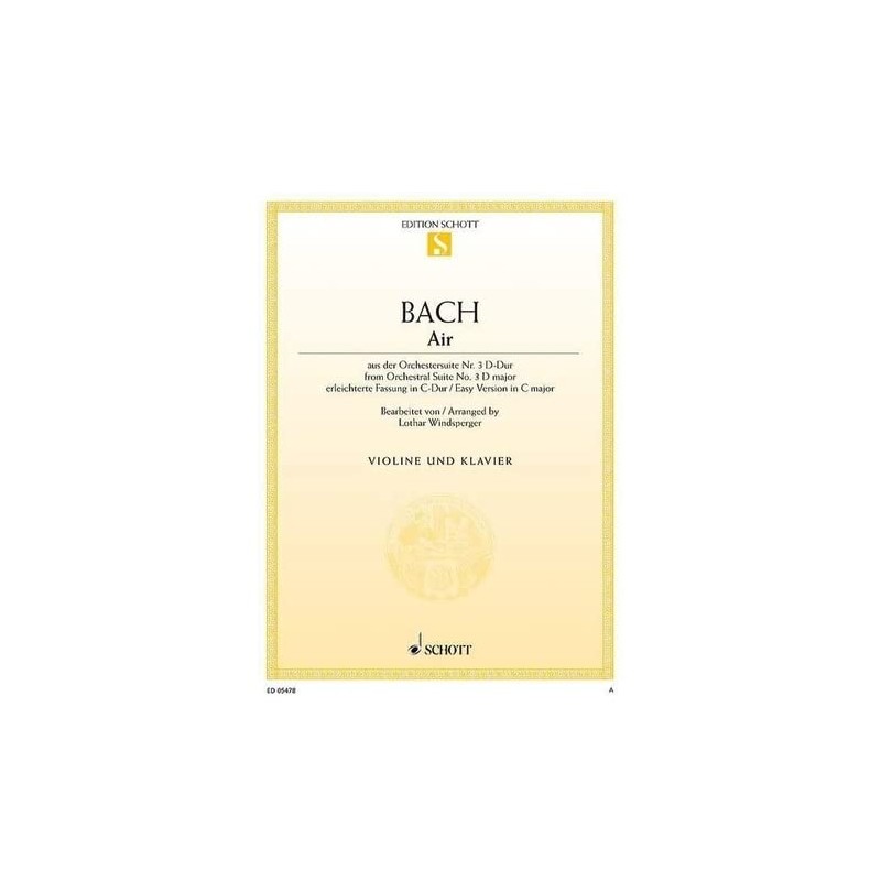 Air: from the Orchestral Suite No. 3 in D major (easy version in C major). BWV 1068. violin and piano.