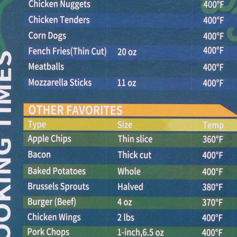 5. Microwave cooking time cheat sheet has wide compatibility and is suitable for any other fryer on the market, bringing convenience to kitchen cooking.