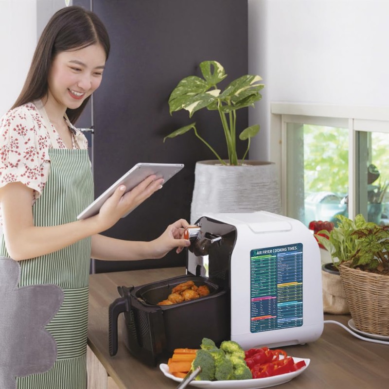 - [Just Stick It Up]: The air fryer cooking times chart sheets feature a magnetic backing that allows you to easily stick them to your fridge or any other magnetic surface in your kitchen. We cooking reference guide use big and clear letters to make sure you can easily read them from any angle. Don't have a magnetic surface? Use the included double sided heat resistance tape to stick onto your appliances.