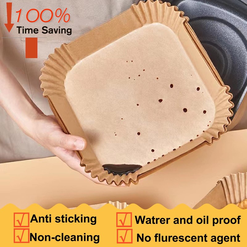 - 【Easy to Use】These non-stick air fryer disposable paper liner are designed with a square bowl shape, which do not need to tear, fold, cut, nor bend, and you can directly put it in when you are ready to cook. The paper liners can be applied for baking, roasting, frying, or serving food, suitable for home baking, camping, BBQ, summer party, and so on, lightweight and practical.