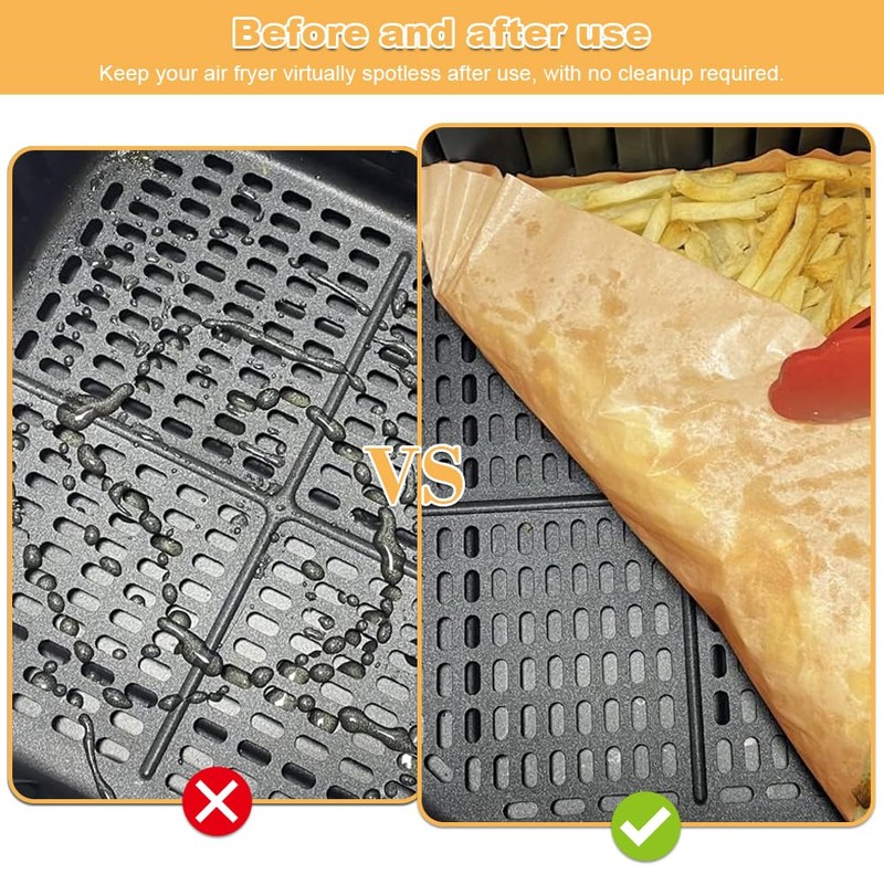 - Easy to Use & Dispose: Simply place the liner in the air fryer basket, cook your food, and dispose of the liner after use – no cutting, folding, or residue left behind