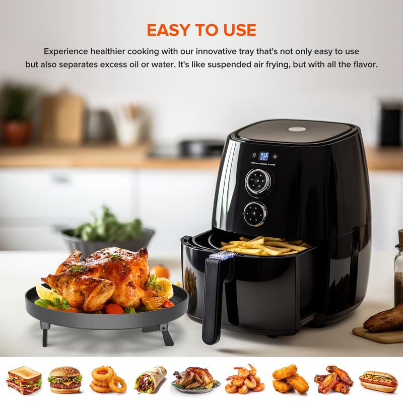 - Even Heat Distribution: Experience consistent and perfectly cooked dishes without the need for flipping thanks to our air fryer tray's even heat distribution.