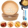 Air Fryer Liners, Air Fryer Disposable Paper Liner, 100 Pcs Air Fryer Parchment Paper for Air Fryer Basket 5-8Qt Clean Easy, 8 In Non-Stick Airfryer Paper Liners Round Sheets with Cooking Tongs Bursh