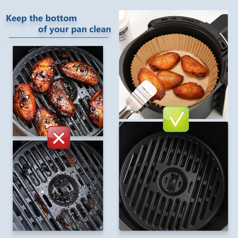 - 【 Keep the bottom of your pan clean 】: Our parchment liner is oil and water resistant, which can effectively prevent food scraps from entering the fryer, keep the appearance and taste of food not damaged, and keep the bottom of your pan clean as before, which can save you a lot of time and effort to clean the fryer.