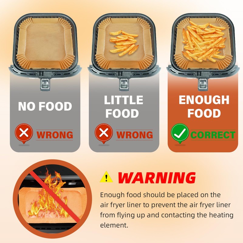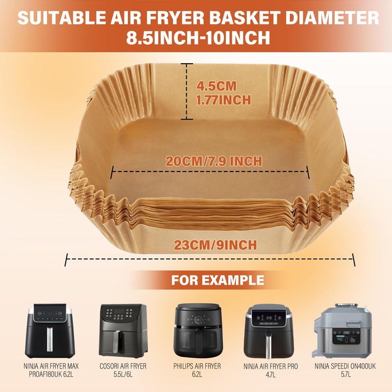 - Healthy and Safe Material: The air fryer liners square 9 inch is made from 100% natural wood pulp with food grade coating, healthy, non stick, grease-proof, waterproof, bpa free, 100% safe for daily use.
