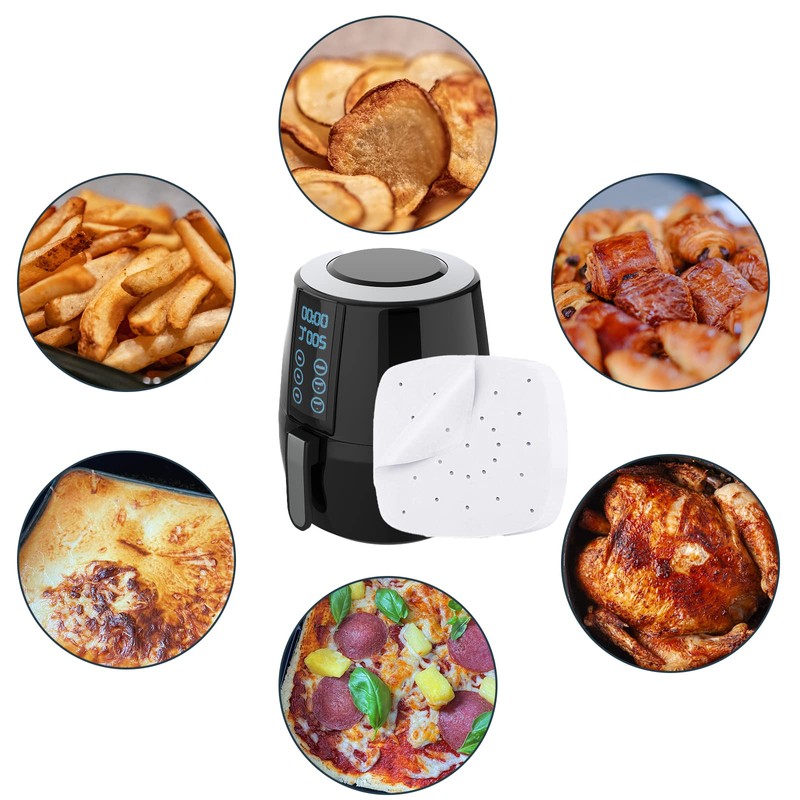 PACKAGE INCLUDED:100 x 8.5inch(21.5cm) air fryer parchment paper liners.
