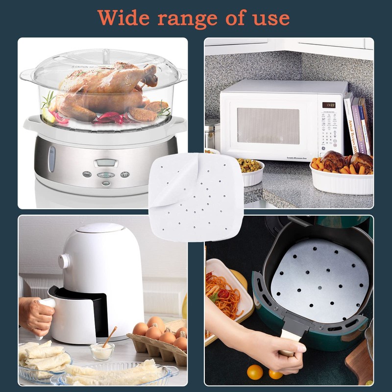- PERFORATED PAPER LINERS - These perforated parchment paper liners are professional designed for air fryer. Paper liners are perforated to allow air to flow freely whilst cooking. Enough holes help to speed up the steam circulation in air fryers or steamers, bring you a good taste!