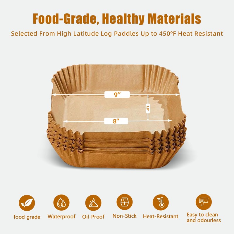 - Simple and Practical Design: Our non-stick liners feature a convenient square design that requires no tearing, folding or cutting. When you're ready to cook, simply place them straight into the air fryer. Their 1.9 Inch raised edges provide extra protection for the sides of the fryer, preventing food from sticking and ensuring even cooking!