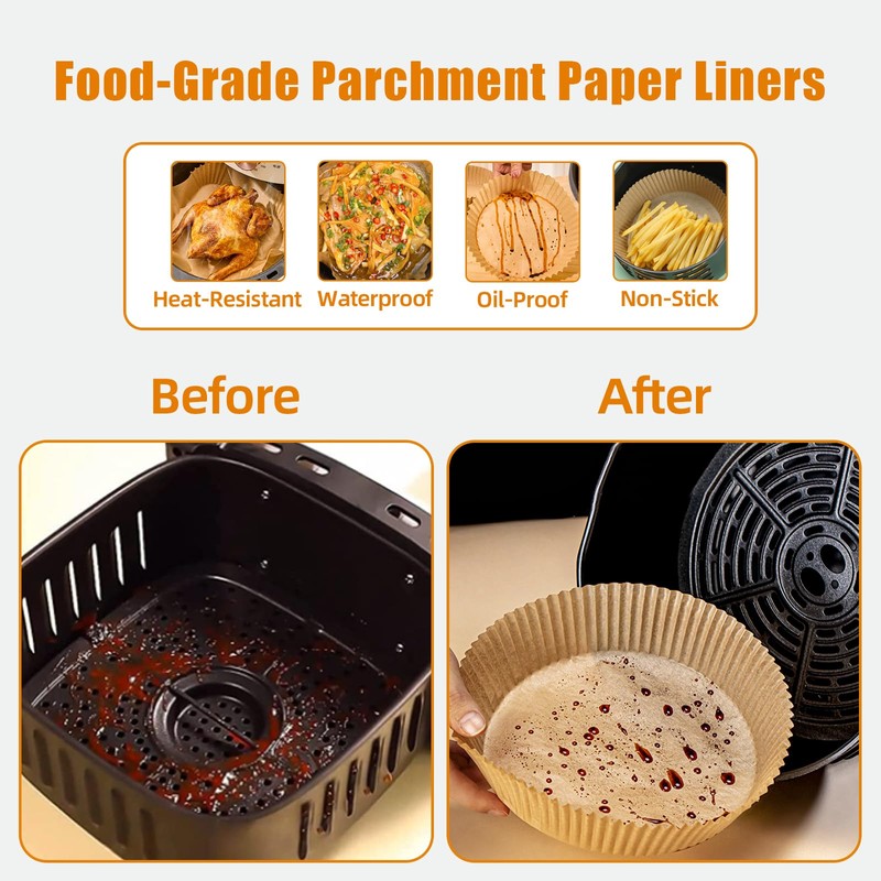 - Effortless Cleaning Solution: Say goodbye to stubborn grease and food residue! Our disposable paper liners effectively shield your air fryer, keeping it as clean as the day you bought it. No more tedious scrubbing or soaking—simply remove the liner after use for hassle-free cleanup.