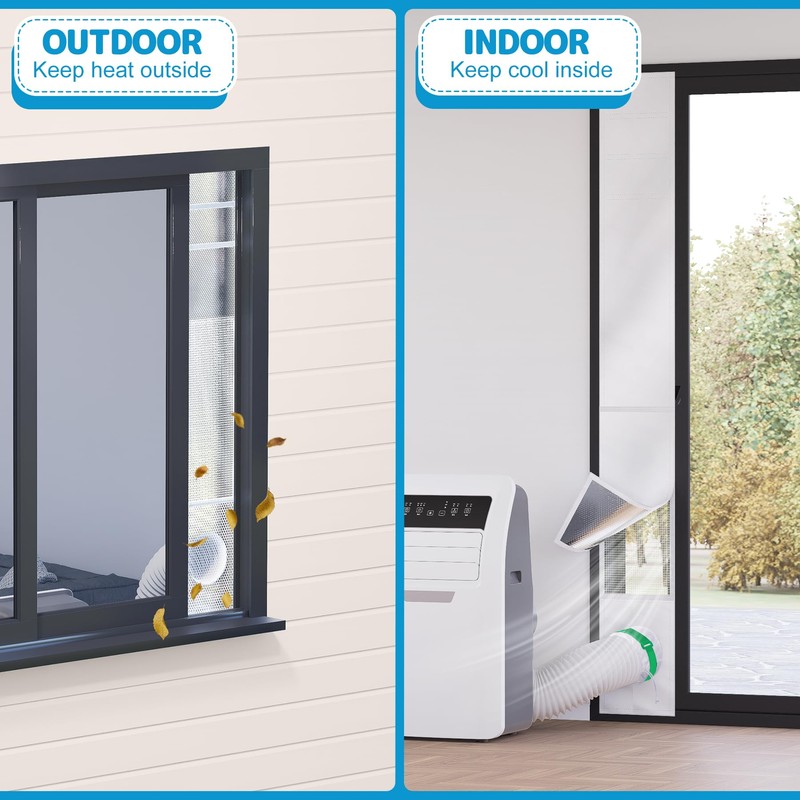 - Heat Reflective Insulation Material - Made of waterproof material with an aluminum foil outer layer, this portable AC door seal kit reflects sunlight heat and reduces heat transfer, improving your room's comfort, especially during hot summer months.