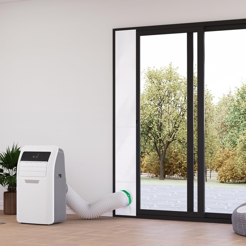 - Widely Compatible - Measuring up to 92" L x 10" W, this AC vent kit can be easily cut the length to fit sliding doors or windows from 76" to 92". Universal fit for portable air conditioners, dehumidifiers and dryers with 4", 5" and 5.9" diameter exhaust hose.