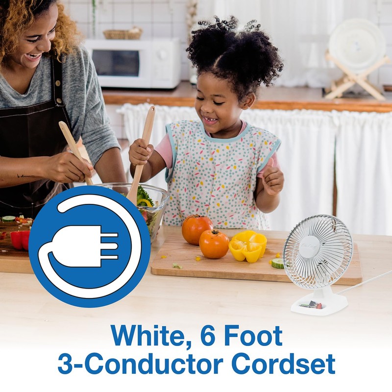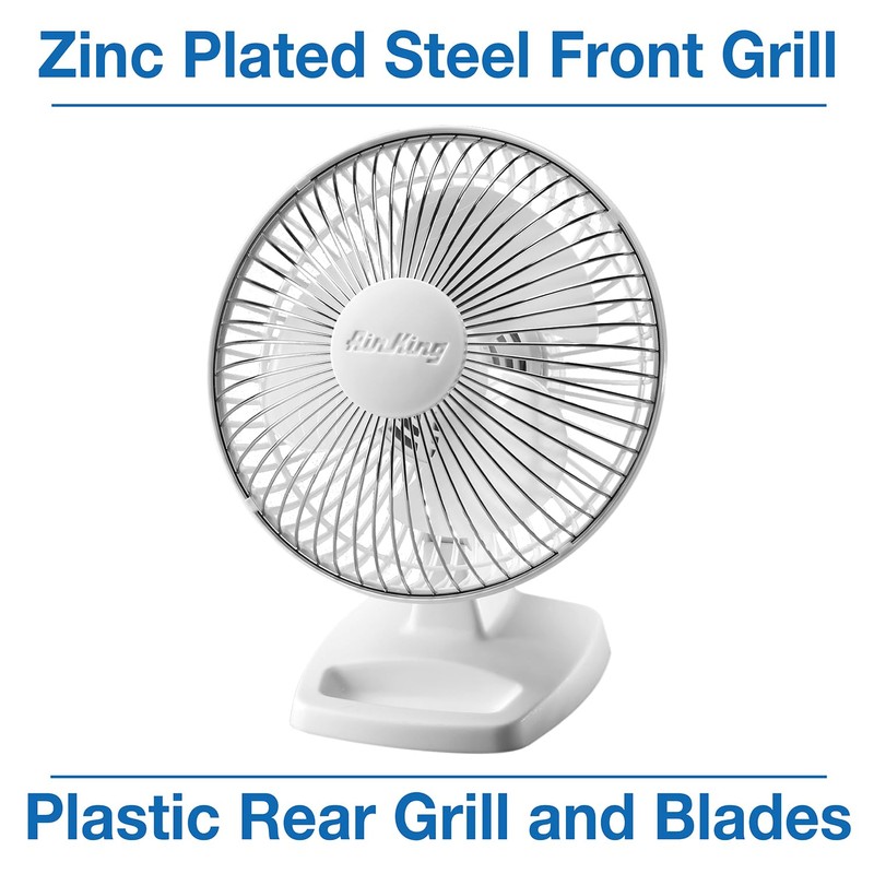 Amazon.comAir King 6-inch 2-speed personal fan is great for use in any area where space is limited, such as offices, beauty salons, toll booths, and stores. The 120-volt, 1/300 HP permanently lubricated motor provides a quiet performance and moves air at two levels, for optimal comfort. It comprises a durable front grill with an impact-resistant rear grill and a polypropylene blade for long-lasting durability. Additionally, a rear-mounted rotary switch allows you to easily control the fan. As an added feature, a convenient well at the base creates a storage space for paper clips, erasers, coins, and other office essentials to help decrease the clutter on your desk. It is OSHA approved for safety. This product measures 8.125-by-6.25-by-10.375-inches (LxWxH) and weighs 2.10 pounds.What's in the Box2-speed fan and 7-foot, 3-conductor type SPT power cordProduct descriptionSold in packs of 4, must purchase in multiples of 4 Air King Commercial Grade Office Fans are ideal for use in offices, production lines, kitchens, beauty salons, toll booths, stores and anywhere else space is limited. Features: Mount: Table Motor: 2-Speed 1/300 Horsepower 1 phase permanently lubricated Controls: Rear Mounted Rotary Switch Power Cord: 6' SPT Type with 3-Conductor Construction: Zinc plated steel front grill with impact resistant plastic rear grill and chemical resistant polypropylene blade Compliance: ETL, OSHA Blade Size: 6" x 6" CFM: 90-190 Dimensions: 8.13" Length x 6.25" Width x 10.38" Height Weight: 2.2 Volts: 120