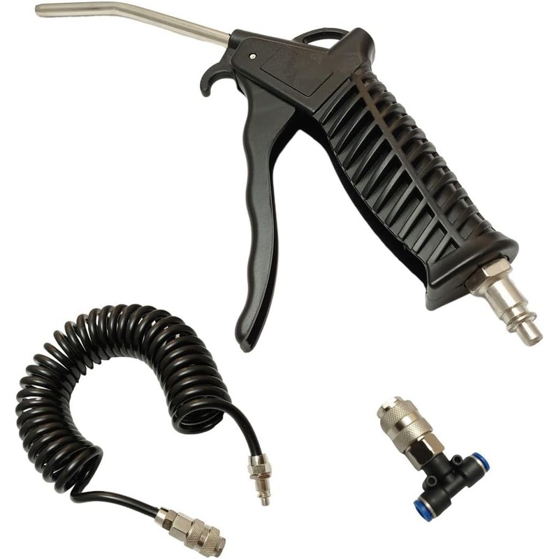 Air Pistol Blow Gun Compressed Air with 5 Metre Spiral Hose and T-Piece Coupling for Truck Cabin Universal Set Black