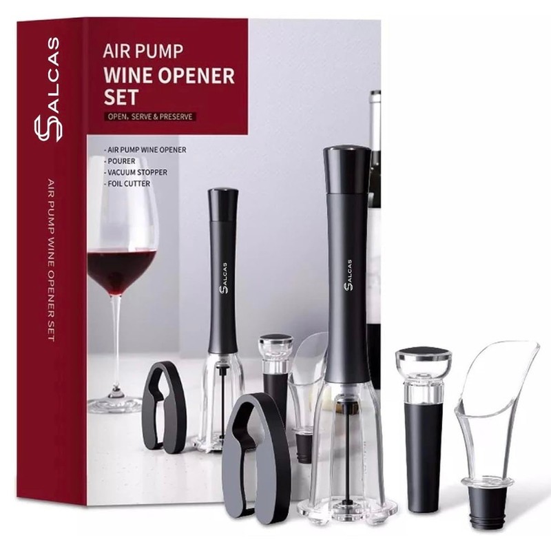 - ● 1 SET OF 4 PIECES: This pneumatic wine opener is equipped with 1x air pump wine opener, 1x foil cutter, 1x vacuum stopper, and 1x wine aerator pourer. It’s the most convenient way to drink wine — surely a thoughtful gift for wine lovers.