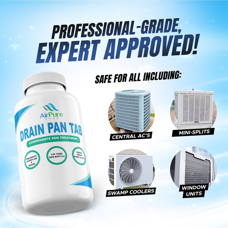 Air Pure Shop Air Pure Drain Pan Tabs - 140 Flow Treatment Tablets for HVAC & AC Condensate Pan Treatment | Prevents Overflow, Cleans Drain Lines, & Eliminates Odors