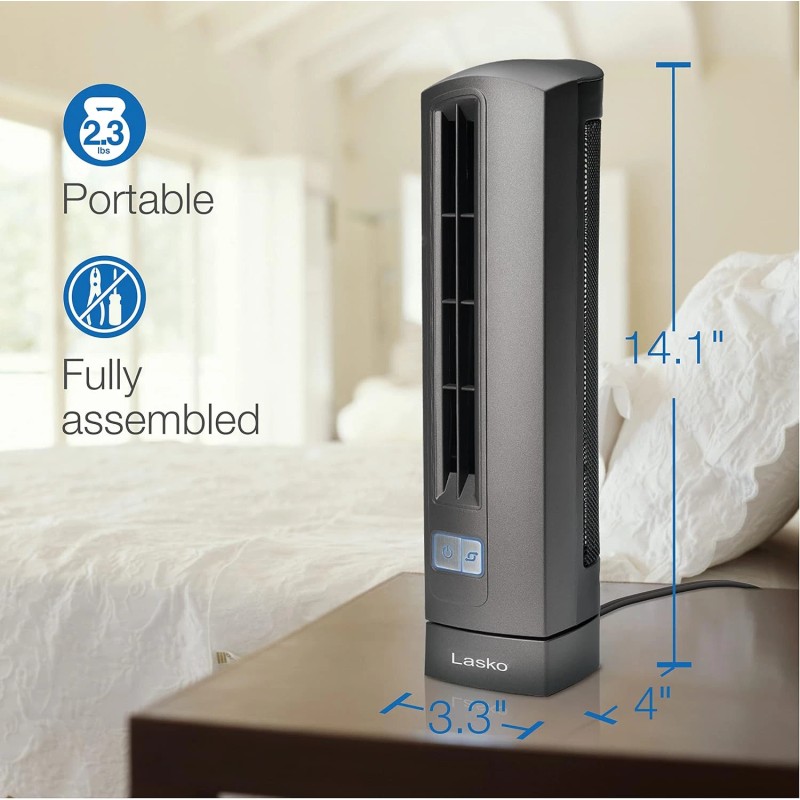 - ✅【SPACE SAVING DESIGN】Standing at only 14-Inches tall, this slim fan will not take up a lot of space on your desk or nightstand