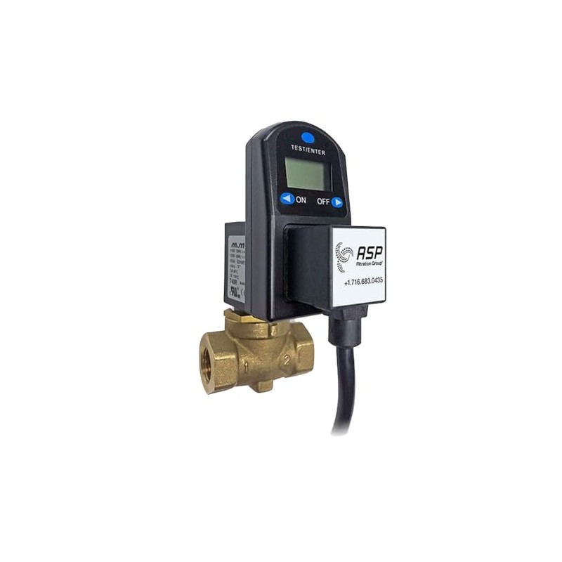 Air System Products DDV720-24 - Compact Timer Drain - 110V - 1/2" ValveRemoves condensate from air compressors and maximizes reliability. This drain is equipped with a digital timer interface for programming a wide range of exact open and close valve settings.FeaturesCompact size, light weightExtended Off cycle times to 99 hours. Test button Adjustable valve open times and close times LED display with backlight Available with optional valve sizes Available with optional valve guard/strainer BenefitsInstalls at drain points: filters, separators, dryers and air receiversConserves compressed air Quick check of drain operation