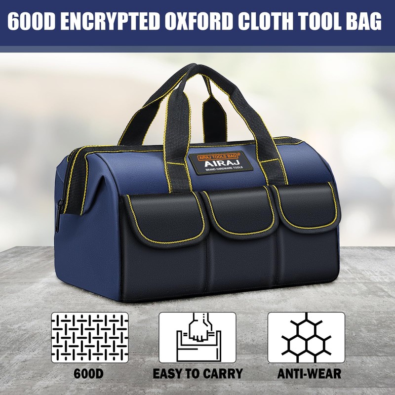 AIRAJ 14-Inch Small Tool Bag,Multi-pockets Tool Organiser With 600D Fabric,Light Weight And Easy to Carry,Wide Open Mouth Storage Bag For Home, Work, DIY