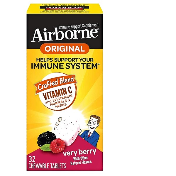 Airborne Immune Support Supplement with Vitamin C, Chewable Tablets-Berry-32 ct - Buy Packs and SAVE (Pack of 2)