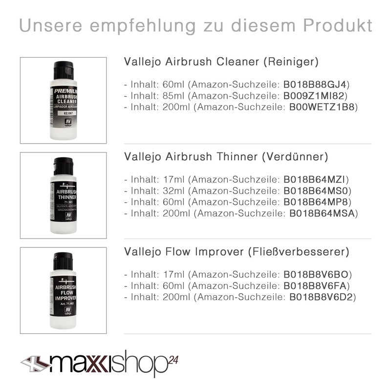- Specially developed acrylic paints for airbrush technology