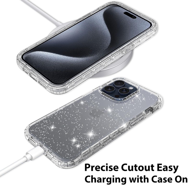 - Protection for Screen & Camera - iPhone 15 Pro Max clear glitter case is designed with raised edge lip and front bumper cover will protect the screen & camera from scratches and dirt when your phone is put down on any place;Exact cutouts for all buttons, ports, camera and speakers. Support wireless charging.