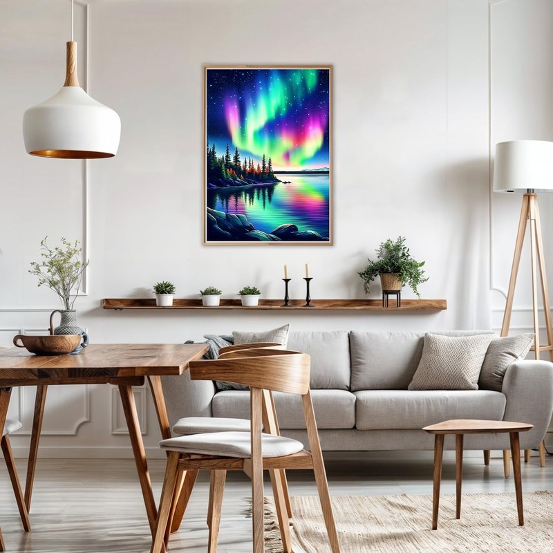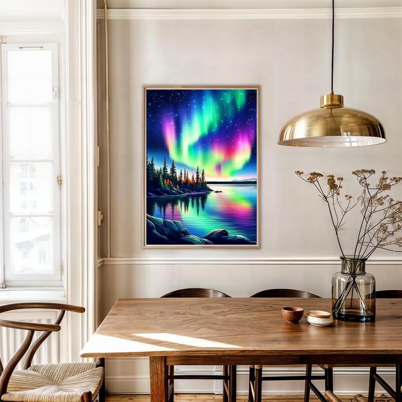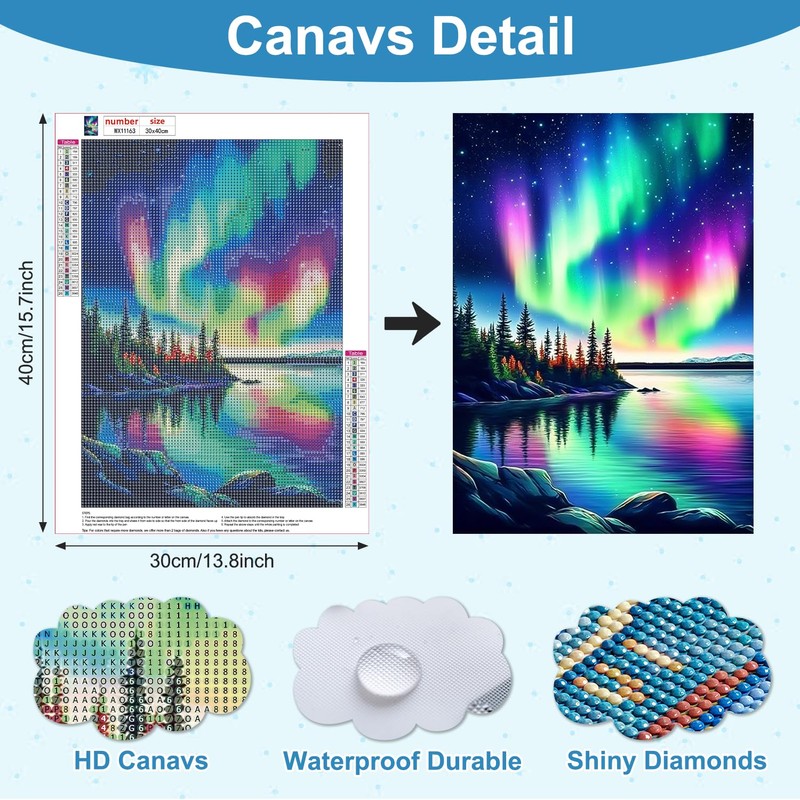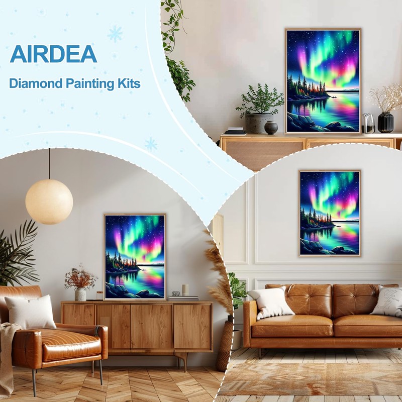 AIRDEA Diamond Art Paintings Kits for Adults,Scenery DIY Gem Art Kits for Beginner,12x16 in,Aurora Landscape,Round Full Drill,Play with Family Friends