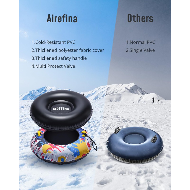 • 【47" Size for Adult】The sledding tube with 47" Diameter outer ring can withstands up to 198 lbs which can easily support a Adult. Perfrct gift for Christmas, Every body can enjoy the exciting winter snow tubing fun in Airefina Snow Tube.