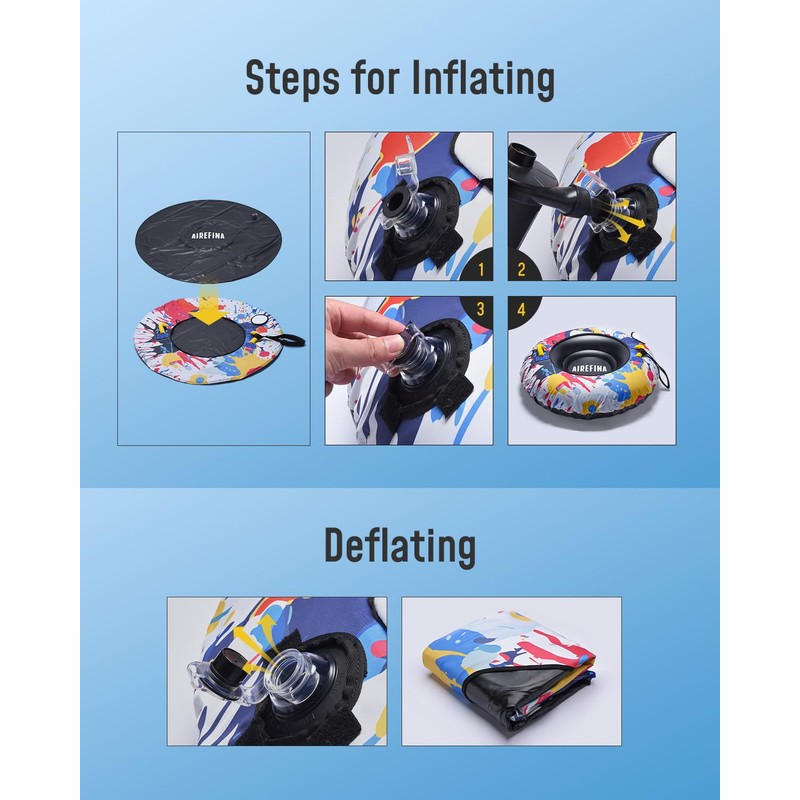 • 【EASY TO INFLATE & DEFLATE】The large 3-in-1 inflation valve ensures the air seal tightly, no need to worry about the occurrence of a leak. The inflation nozzle features an anti-leak design for a faster inflation process. For deflation, simply open the bottom nozzle to make it easier to let the air out.