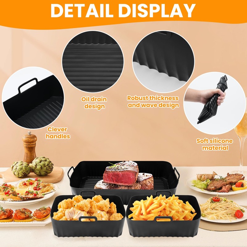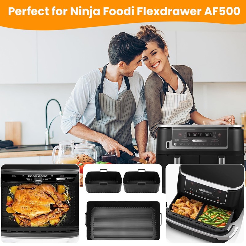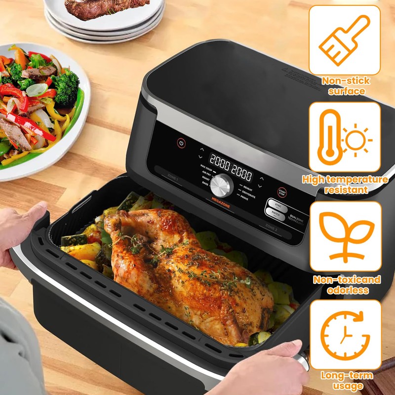 - 100% FOOD GRADE SILICONE Our Ninja hot air fryer liners are made of durable food grade silicone, BPA free, non-toxic, non-stick, waterproof, oil resistant and 100% healthy, heat resistant up to 400°F(205°C). These liners ensure 100% healthy cooking. Cook with confidence and enjoy the delicious results every time.