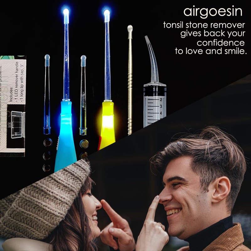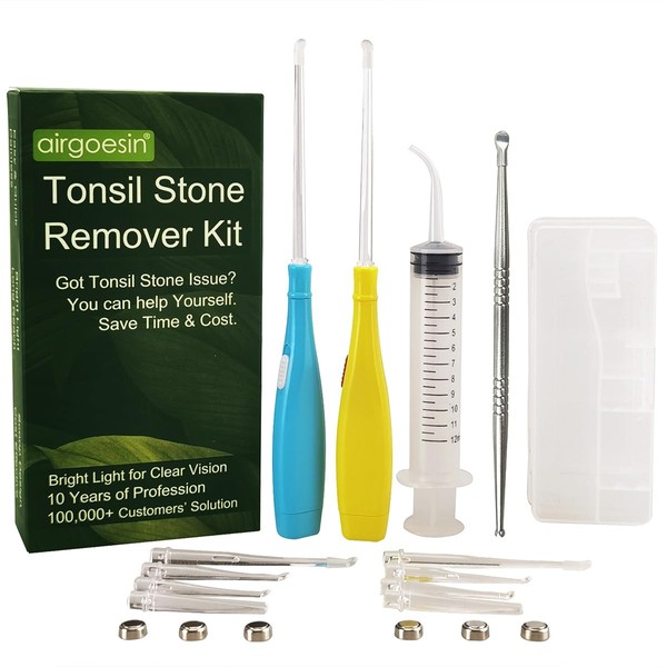 airgoesin Airgoesin? 6.75 inch Tonsil Stone Remover LED Tool Kit - 2 Sets, Oral Irrigation Syringe & Stainless Steel Pick, Tonsil Stone Removal Kit for Breath Freshening