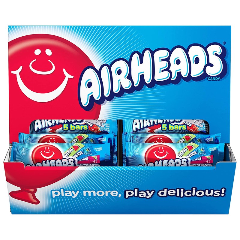Airheads Variety 5 Full Size Bars Pack with Counter Display, Assorted Flavors, 18 Pack (90 Bars Total), 49.5 ounces