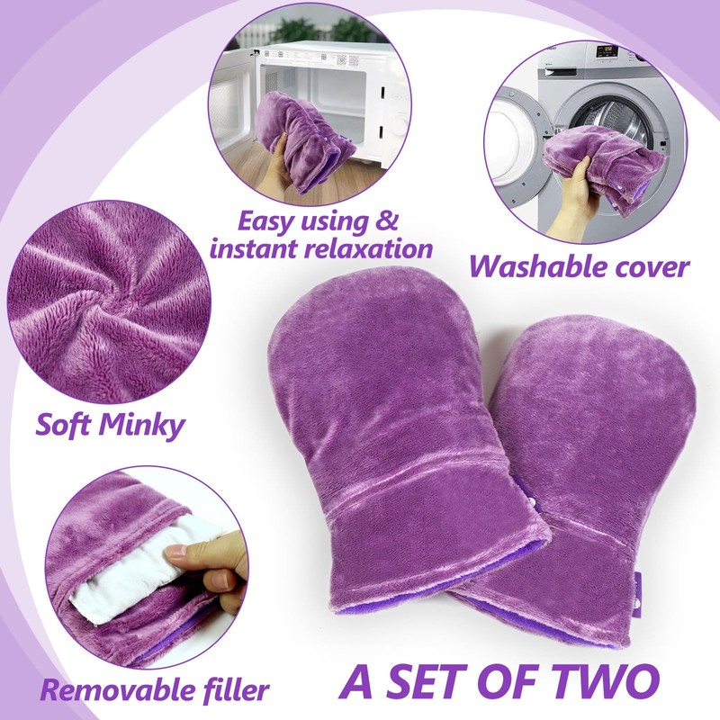 AiricePac Heated Mitts for Arthritis, Microwavable Hand Warmer for Women Men in Cases of Stiff Joints, Trigger Finger, Warm Therapy Mittens Unscented Hand Muff, Purple