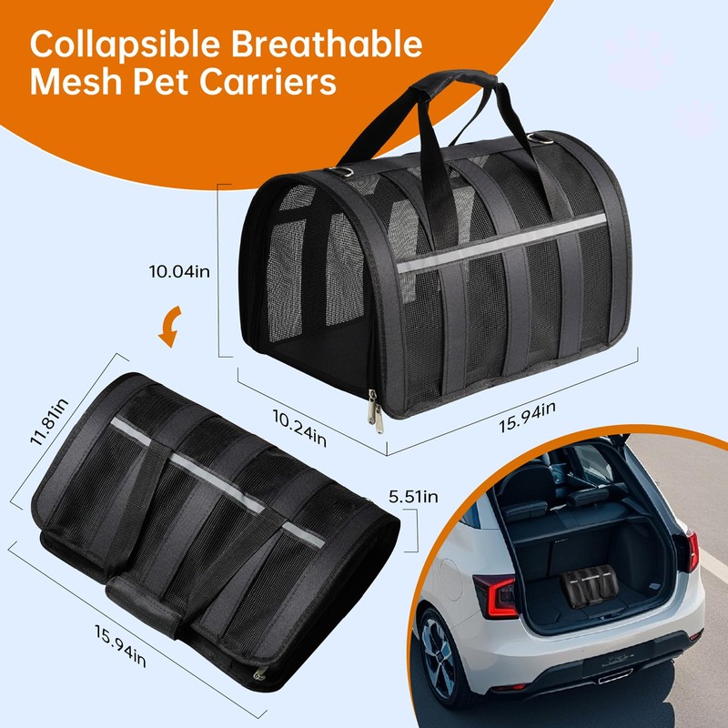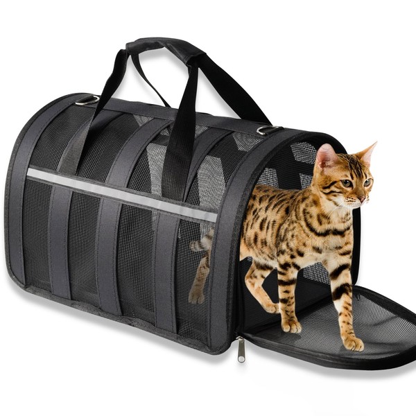 Airline Approved Cat Carrier for Small & Medium Pets up to 15 Lbs, Soft-Sided Collapsible Travel Carrier with Breathable Mesh, Lightweight & Portable Design Black