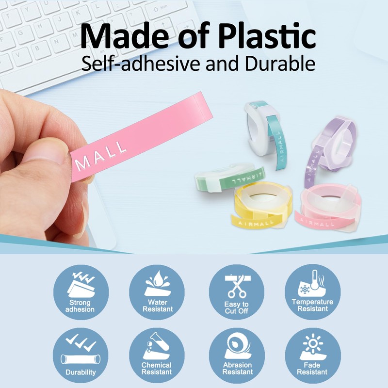 - Colour of the compatible with dymo 3D label tape: 1 x pink, 1 x light yellow, 1 x light blue, 1 x light green, 1 x light pink, 1 x light purple, suitable for indoor and outdoor use.