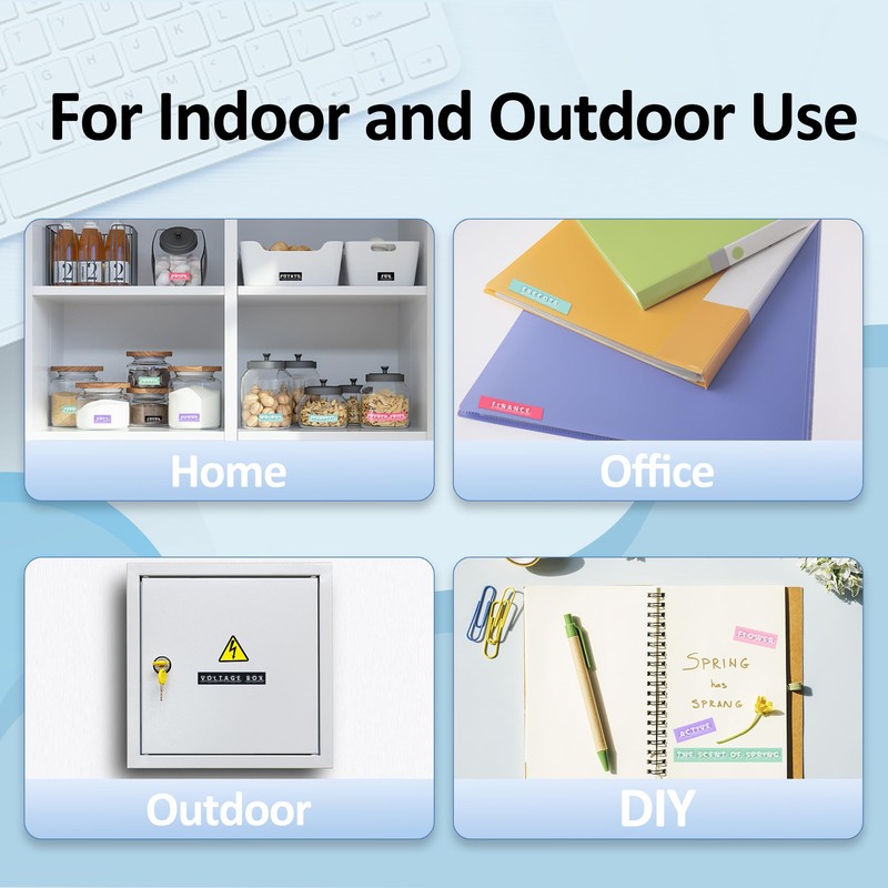 - These compatible with dymo label tape are recommended for use at home and in the office and can be used for sorting kitchen items and labelling food in the fridge, office documents and personal items. Enjoy a clean and cozy life with these clear markings.