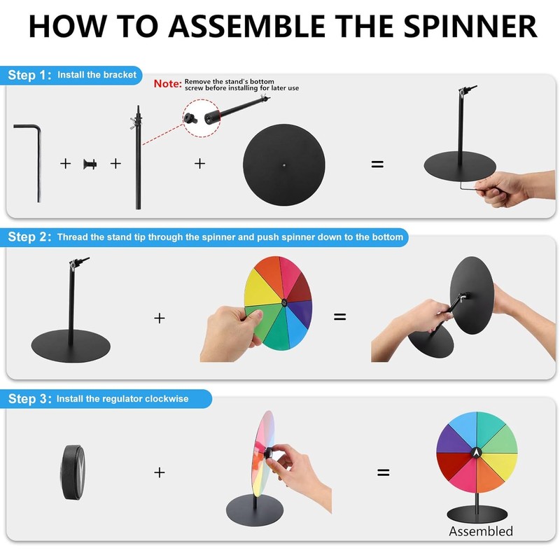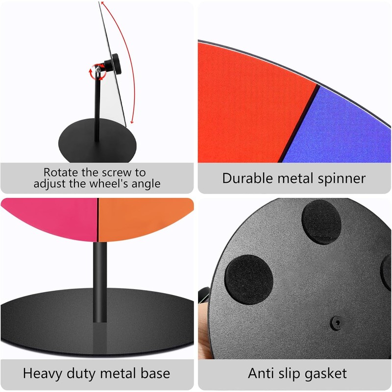 - Smooth Rotation: The sturdy, all-metal construction ensures a balanced, evenly distributed load, reducing wobble during rotation and enhancing stability, durability, and longevity. The color wheel also minimizes friction and resistance during rotation, allowing the prize wheel to spin smoothly and quietly, improving the overall user experience