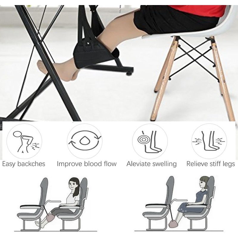 - Compact & Portable – Lightweight and foldable, this foot hammock fits easily into any carry-on or backpack, making it ideal for frequent flyers and commuters.